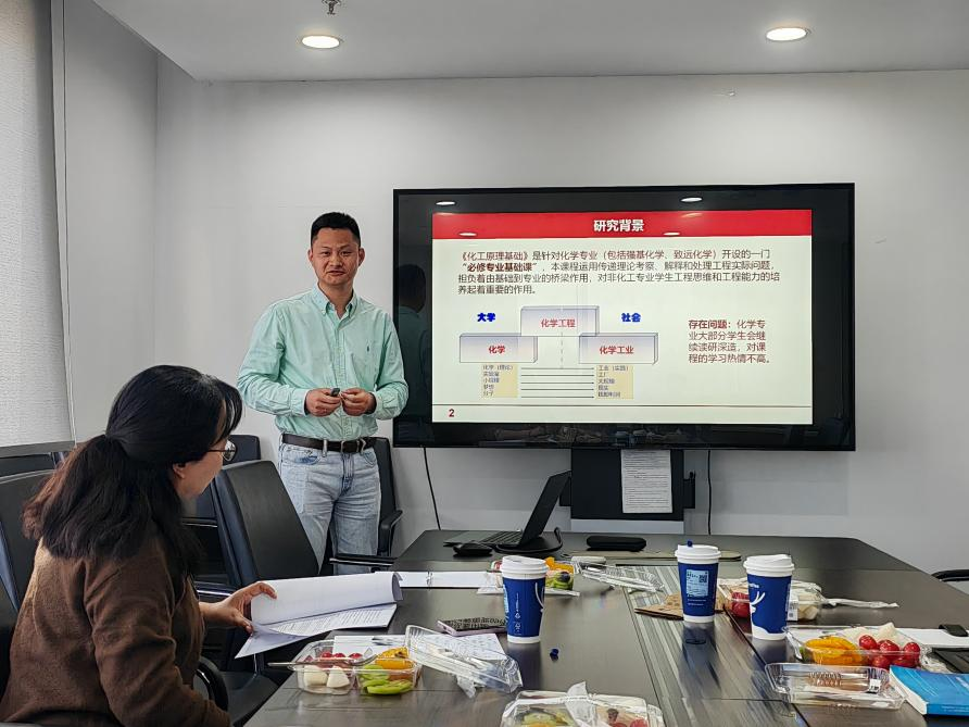 2024年度糖心视频 教学研究基金聚焦化工系专业课程建设与人才培养,是糖心视频 响应学校“教育思想大讨论”、共商“新时代一流化工人才何以炼成”的阶段性答卷。会上,5位项目负责人围绕PBL-TBL-FC混合式教学、案例式教学法、工程思维在科研工作中的植入、翻转课堂教学模式的运用及AI赋能课堂等主题,依次汇报实施路径、数据成效与持续改进方案,并现场回答专家提问。评审组从问题的提出与解决、课程目标的凝练与实现、教学设计的合理性以及考核指标的优化等方面进行了评定并提出了宝贵的建议。